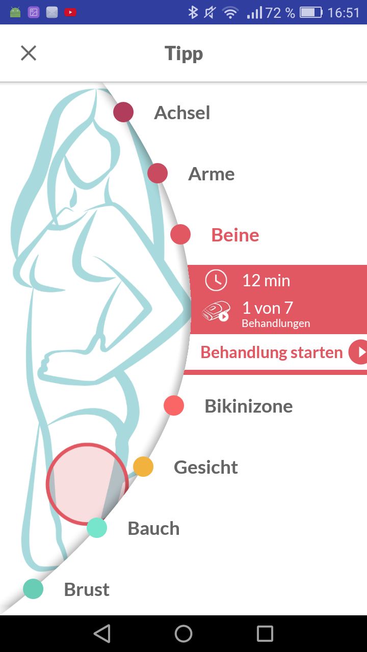 Ich hatte ja ganz am Anfang schon erwähnt, dass eine regelmäßige und präzise Anwendung für eine erfolgreiche Haarentfernung alternativlos sind. Auch mir fällt dieses “dran denken” oft schwer, daher habe ich mir die empfohlene App heruntergeladen und muss sagen, die ist spitze. Sehr einfach, sehr intuitiv. Auch andere Hersteller haben mittlerweile solche Apps, wobei mir diese am besten gefällt, ich werde erinnert und kann gleichzeitig auch festhalten wann ich was gemacht habe.